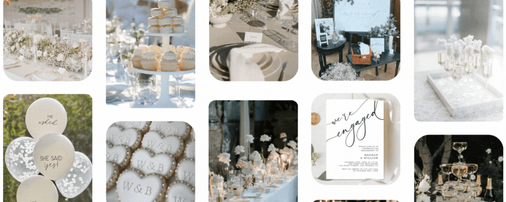 Begin gathering wedding inspiration through Pinterest boards, wedding blogs, and bridal expos. This will help define your wedding style and preferences.